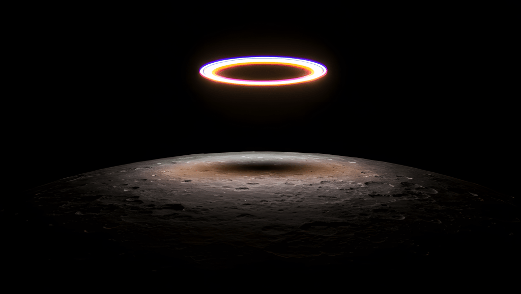 As my two hours ran out, I made my way to the exit to meet up with Sam and thank him. I’m maybe 20 steps from the door when I pass the very last exhibit booth of the hall. Bear in mind that at this point I’m carrying a bag so full of convention swag it legitimately IS pouring out the top, I dropped a stress ball in the shape of the moon on the floor only moments ago. In my peripherals I catch sight of something white…and circular…something ring-shaped…